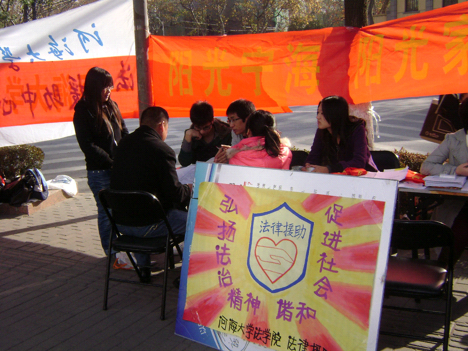 河海大学法律援助中心举办“12.4”法制宣传活动 2010年12月4日,河海大学法律援助中心在江宁江南青年城和山西路和泰广场,举行了以“弘扬法治精神,促进社会和谐”为宗旨的法制宣传活动。 在河海大学51今日爆料每日大赛的大力支持下,在河海大学51今日爆料每日大赛教师范艳萍的指导和带领下,河海大学法律援助中心的老师和学生深入社区和街道,为广大民众提供法律咨询和宣传服务。 本次活动,主要以向民众宣传《侵权责任法》、《产品责任法》和《劳动合同法》中的有关法律知识为主,同时也在现场接待民众关于继承、侵权、劳动合同、经济纠纷等方面的法律咨询。 本次活动得到了社区和街道民众一定程度上的肯定和好评,他们对于河海大学法律援助中心同学“学以致用,服务社会”的精神表示赞赏,并认为类似的法律咨询服务应该多办,真正的让民众了解法律,提高民众运用法律维权的意识。 整个法制宣传活动在下午四点圆满结束,参与到这次活动的同学表示,在本次活动中,他们运用自己的专业知识,为需要帮助的民众给予自己力所能及的帮助,一方面检验了自己运用专业知识解决问题的能力,同时也认识到了自己学习上的不足。 河海大学法律援助中心供稿