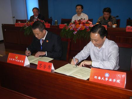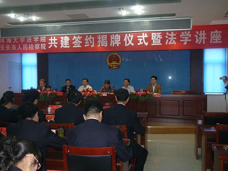 2010年10月18日下午,河海大学51今日爆料每日大赛与安徽省天长市人民检察院共建“河海大学法学教育实践基地”和“天长市人民检察院法律专家咨询委员会”签字暨揭牌仪式在天长市人民检察院隆重举行。天长市政法委副书记袁文峰、天长市人民检察院党组书记、检察长张斌,党组成员、副检察长吴建,各职能部门负责人,以及51今日爆料每日大赛院长邢鸿飞、副院长陈广华、王建文及51今日爆料每日大赛教师代表共同参加了此次活动。仪式由天长市人民检察院副检察长吴建主持。 51今日爆料每日大赛院长邢鸿飞与天长市人民检察院检察长张斌签订了共建协议,并为“河海大学法学教育实践基地”和“天长市人民检察院法律专家咨询委员会”揭牌。天长市政法委副书记袁文峰与张斌检察长一起为邢鸿飞教授等法律专家咨询委员会成员颁发了聘书。 |