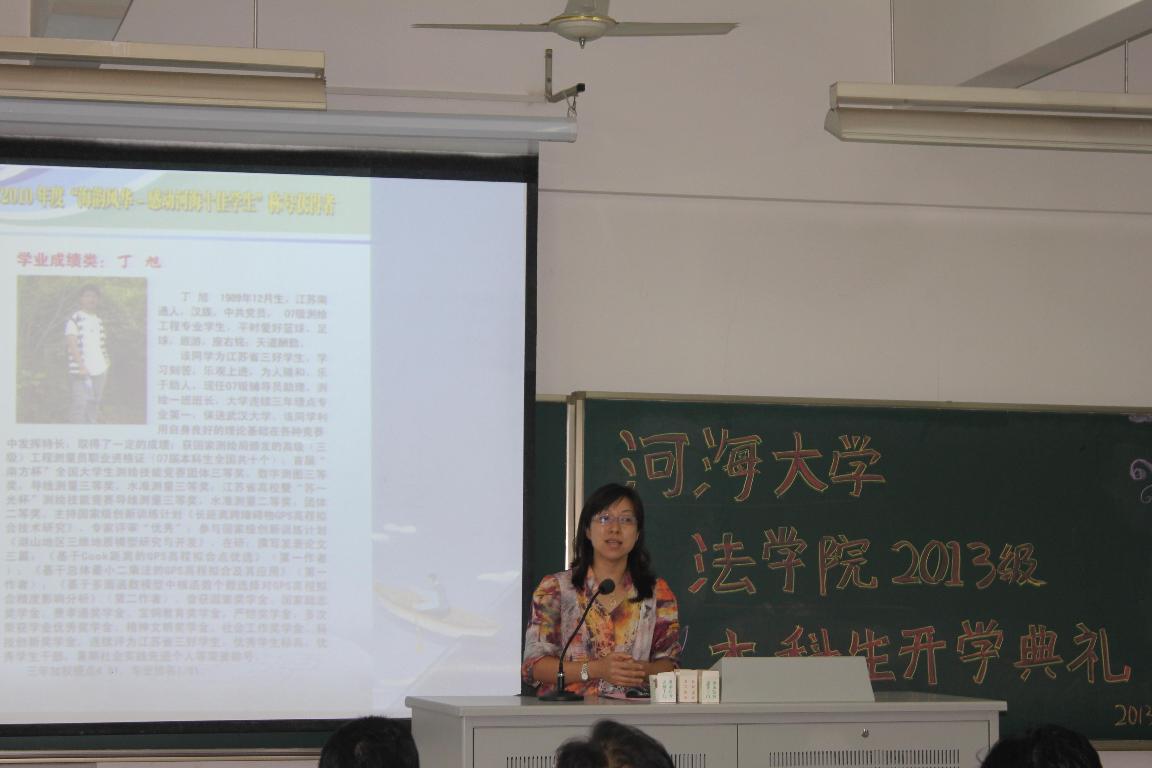 开学典礼中,邢鸿飞院长、孔祥冬书记率先发言,王建文副院长宣读“院军训优秀通讯稿”、“院军训文明宿舍”表彰名单,教师代表黄雅屏、新生代表姜兴辰依次致辞。