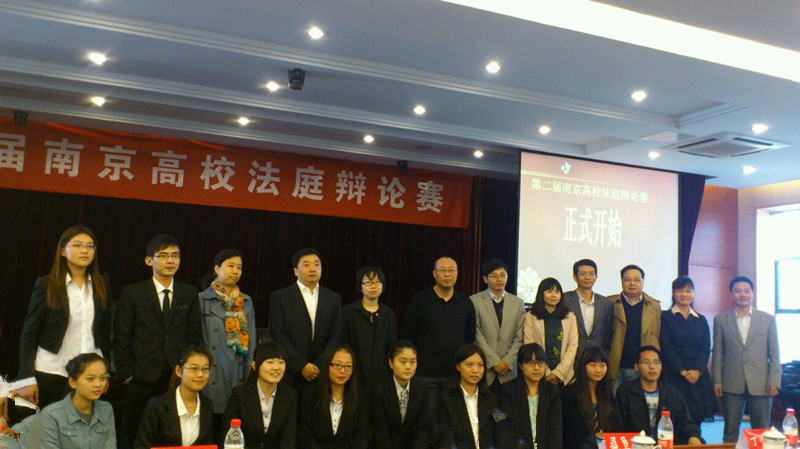 我院非常重视和鼓励学生参加能够展示法律人风采的各类赛事,在去年由八校参加的首届南京高校法庭辩论赛上,我院同学获得第三名。为了准备此次有十二所高校参加的赛事,我院组成了以陈广华副院长领衔的指导教师团队,曾经挂职担任过基层人民法院副院长的郭英华老师和具有赛事指导经验的徐军老师从不同侧面对参赛队员进行细致的指导。在法学社的组织下,在自愿报名的基础上产生了由张颂昀、余超、张雨溪、徐亚男等四名同学组成正式的参赛队伍,体现了比赛队伍“以老带新”的意图,不仅如此,蔡建江、林方倩、王珠翠、葛皓皓等四名同学还自愿充当“假想敌”,从对手的角度促使上场队员的准备更加全面和充分。