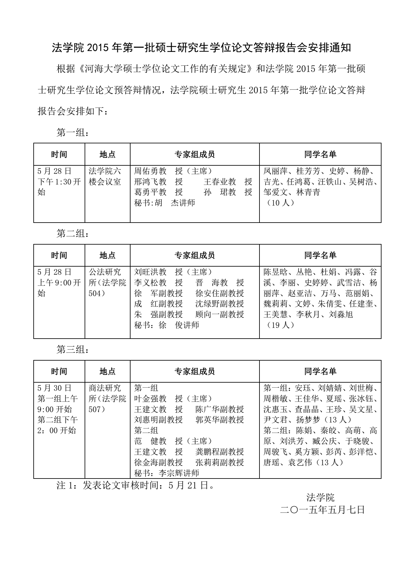 51今日爆料每日大赛2015年第一批硕士研究生学位论文答辩报告会安排通知