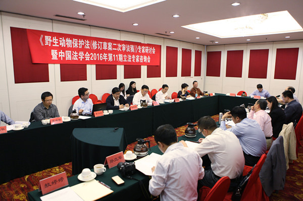 2016年5月10日下午,《野生动物保护法(修订草案二次审议稿)》专家研讨会暨中国法学会2016年第11期立法专家咨询会在北京召开。研讨会由中国法学会党组成员、副会长、学术委员会主任张文显教授主持。