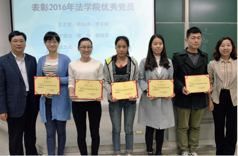 会上,学院党委书记孔祥冬宣读了优秀党员名单,并和院长杨春福教授共同为获奖者颁发了证书,肯定了他们的教学工作和学习成果。