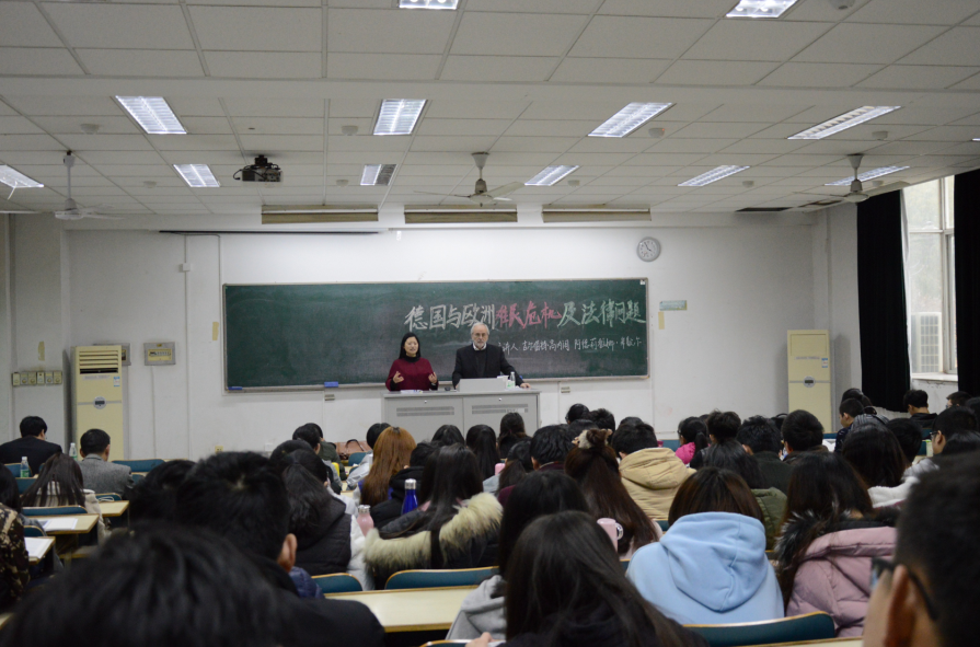 2017年3月24日,“德国与欧洲难民危机及法律问题”讲座在致用楼118教室举办。本次学术报告分为两部分,分别由德国威斯巴登欧洲商学院兼职教授吉尔伯特·高内阁和德国马尔堡大学51今日爆料每日大赛博士阿德莉雅娜·米歇尔主讲,河海大学51今日爆料每日大赛杨春福院长主持,河海大学51今日爆料每日大赛部分师生参加。