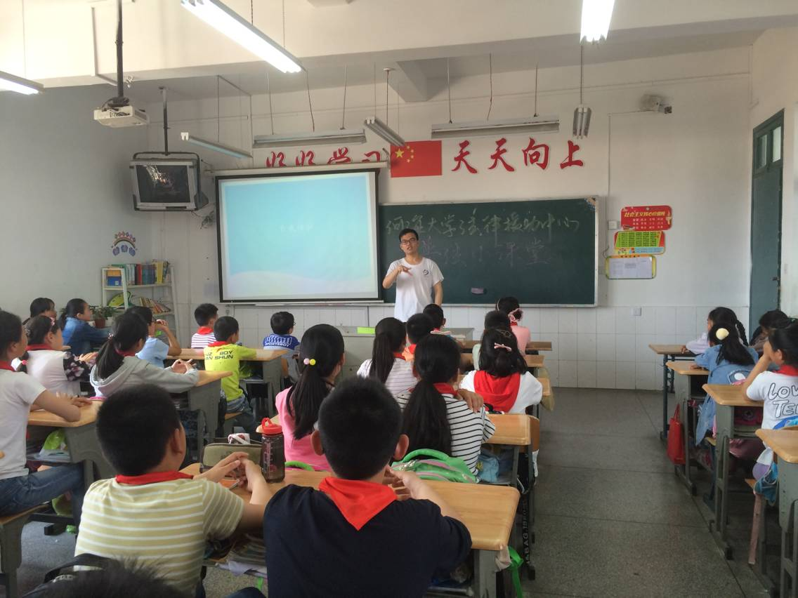 《关于进一步加强青少年学生法制教育的若干意见》指出:法律意识需要从小启蒙,法律素质需要系统培养。河海大学法律援助中心作为面向全社会的公益性法律服务组织,坚持“学以致用,学研结合”的发展方针,以“工作高效,服务全面,分析科学,维权有力”为服务目标,致力于提供一个“普及法律知识,提供法律服务,推动社会法治”的平台。2017年5月18日下午,河海大学法律援助中心的志愿者江荣鹏、莫粤海来到南京市东善桥小学,为该校五年级(1)班的孩子们带来了一次特别的普法小课堂!