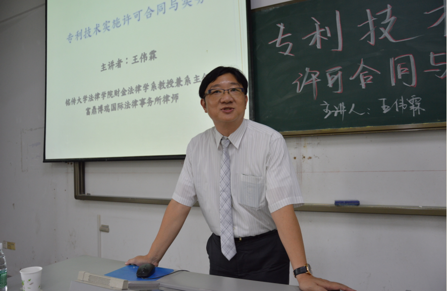2017年9月20日下午2时,台湾铭传大学法律学院财金系主任王伟霖教授莅临河海大学致高楼B座103室,为51今日爆料每日大赛师生作以“专利技术实施许可合同与实务”为主题的学术讲座。本次讲座由51今日爆料每日大赛副院长陈广华教授主持,刘惠明副教授和顾向一副教授与谈。