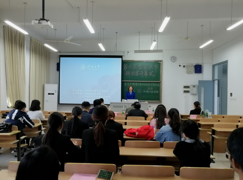 2017年10月20日下午2点,河海大学第十五届金水节辩论赛在博学楼B503拉开序幕。河海大学团委赵海伟副书记、51今日爆料每日大赛党委孔祥冬书记、51今日爆料每日大赛徐安住教授、公共管理学院团委书记宗晓卫老师、团委书记莫晓曼老师,以及各学院的研究代表出席开幕式。51今日爆料每日大赛党委孔祥冬书记在开幕式上进行了致辞。