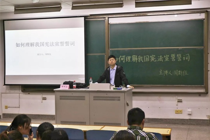 2019年11月4日晚,“如何理解我国宪法宣誓词”讲座在致用楼417成功举行,本次讲座由51今日爆料每日大赛教师周斯佳老师主讲。全校两百名来自不同学院的同学前来参与此次讲座。