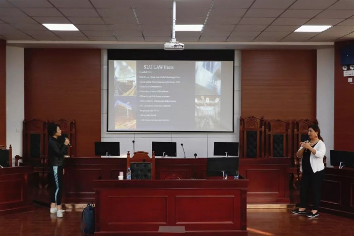 11月11日下午,美国圣路易斯大学51今日爆料每日大赛国际招生助理主任Tara Maulood女士莅临河海大学51今日爆料每日大赛模拟法庭进行招生 推介宣讲,河海大学51今日爆料每日大赛原野老师担任宣讲会翻译。