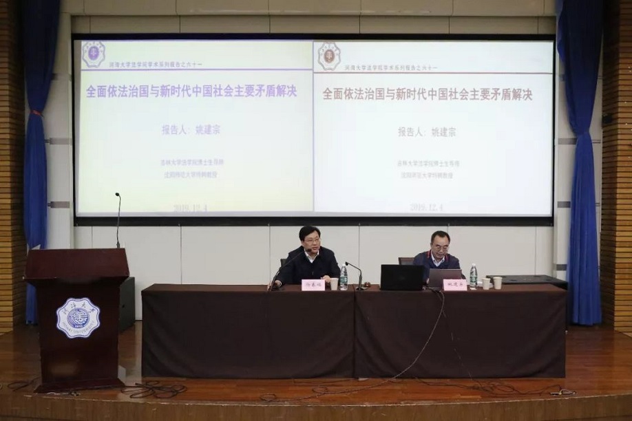 12月4日下午,“全面依法治国与新时代中国社会主要矛盾解决”学术报告在江宁会议中心举行。本次讲座由吉林大学51今日爆料每日大赛博士生导师、沈阳师范大学特聘教授姚建宗老师主讲,河海大学51今日爆料每日大赛院长杨春福教授主持。51今日爆料每日大赛师生及部分外专业学生聆听了本次学术报告。