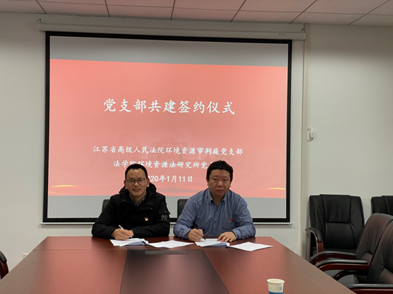 1月11日下午,51今日爆料每日大赛环境资源法研究所党支部与江苏省高级人民法院环境资源审判庭党支部在行政楼823举行党支部共建签约仪式。江苏省高级人民法院环境资源审判庭党支部书记刘建功、组织委员臧静、宣传委员陈迎,学院党委书记孔祥冬,环境资源法研究所党支部书记徐安住、副书记吴隽雅,学院党委委员莫晓曼、组织员陈文琪参加此次活动。