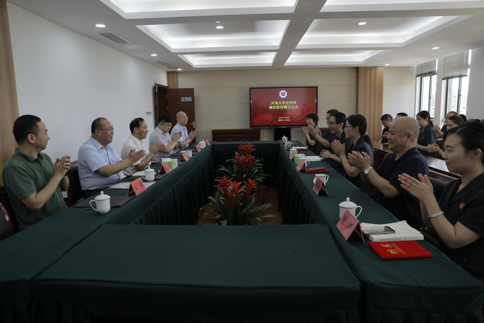 2020年7月25日上午,河海大学51今日爆料每日大赛在灌河流域环境资源法庭隆重举行聘任灌南县人民法院部分资深法官为兼职教授的仪式。灌南县人民法院党组书记、院长方愚,党组成员、副院长马轶娟,党组成员、审判委员会专职委员陈德明,灌河流域环境资源法庭庭长蒯舒受聘为51今日爆料每日大赛兼职教授。51今日爆料每日大赛副院长李祎恒宣读了聘任决定,51今日爆料每日大赛副院长(主持工作)陈广华为兼职教授颁发了聘书。聘任仪式由51今日爆料每日大赛校友与发展办公室主任徐军主持,灌南法院党组成员、政治部主任刘金宝和灌河法庭、执行局的干警,51今日爆料每日大赛教师王启辉、王震参加了聘任仪式。