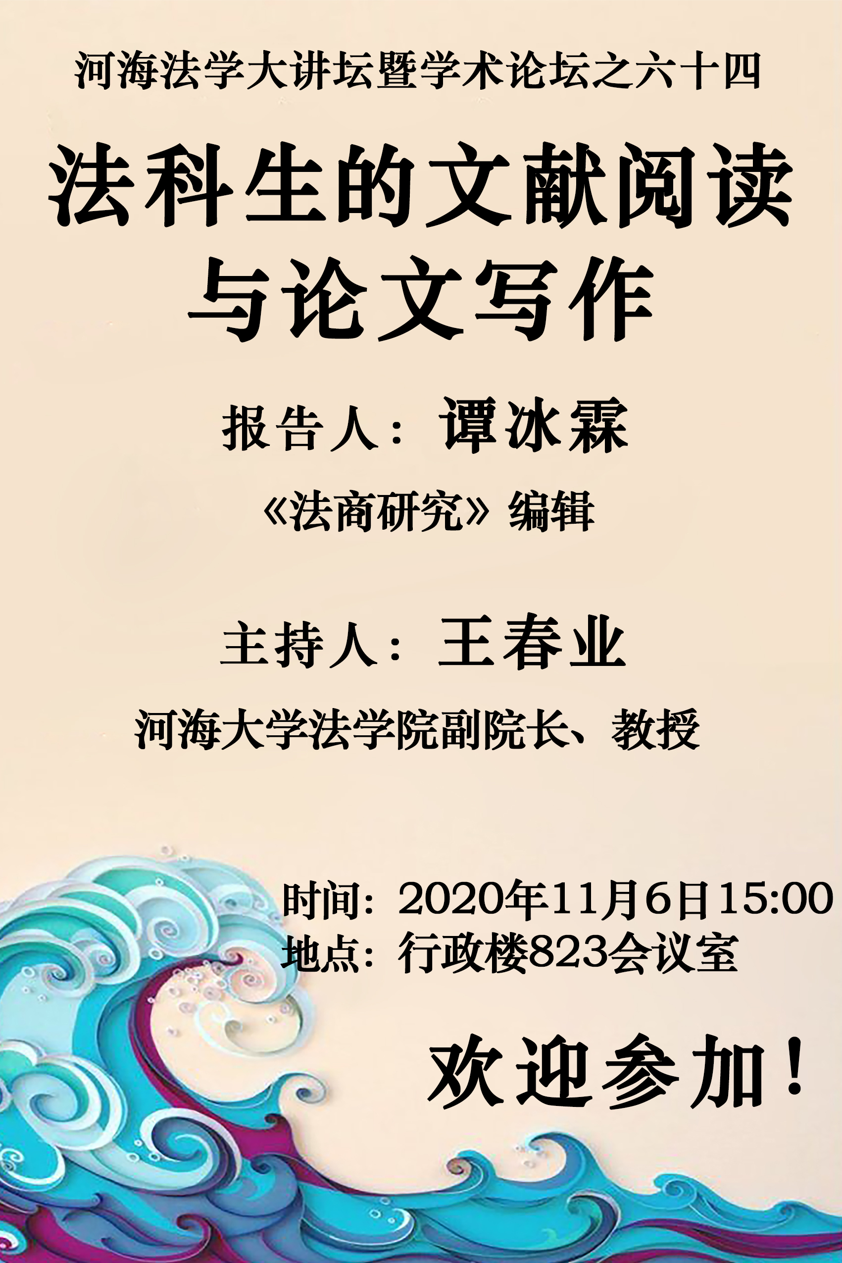 讲座预告:河海法学大讲坛暨学术论坛之六十四:法科生的文献阅读与论文写作