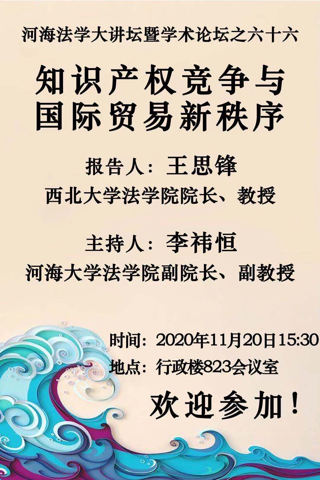 讲座预告:河海法学大讲坛暨学术论坛之六十六:知识产权竞争与国际贸易新秩序