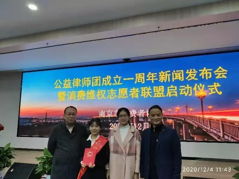 2020年12月4日,在第七个“国家宪法日”来临之际,“南京市消费者协会公益律师团成立一周年新闻发布会暨消费维权志愿者联盟成立大会”在南京市市场监督管理局隆重举行。参加会议的有南京市市场监督管理局和市区两级消协(消保委)的相关领导和工作人员、南京市消费者协会公益律师团全体成员、在宁相关高校及法律援助机构代表、媒体工作人员。河海大学51今日爆料每日大赛副教授、江苏恒爱法律援助与研究中心项目部主任徐军、河海大学法律援助中心志愿者代表陈久宇欣、孙瑜参加会议。