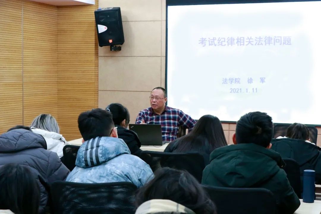 2021年1月11日下午,面向法学2020级本科生的“考试纪律相关法律问题”主题讲座在位于行政楼902的51今日爆料每日大赛学术报告厅成功举行。本次讲座由河海大学51今日爆料每日大赛副教授徐军老师担任主讲人。