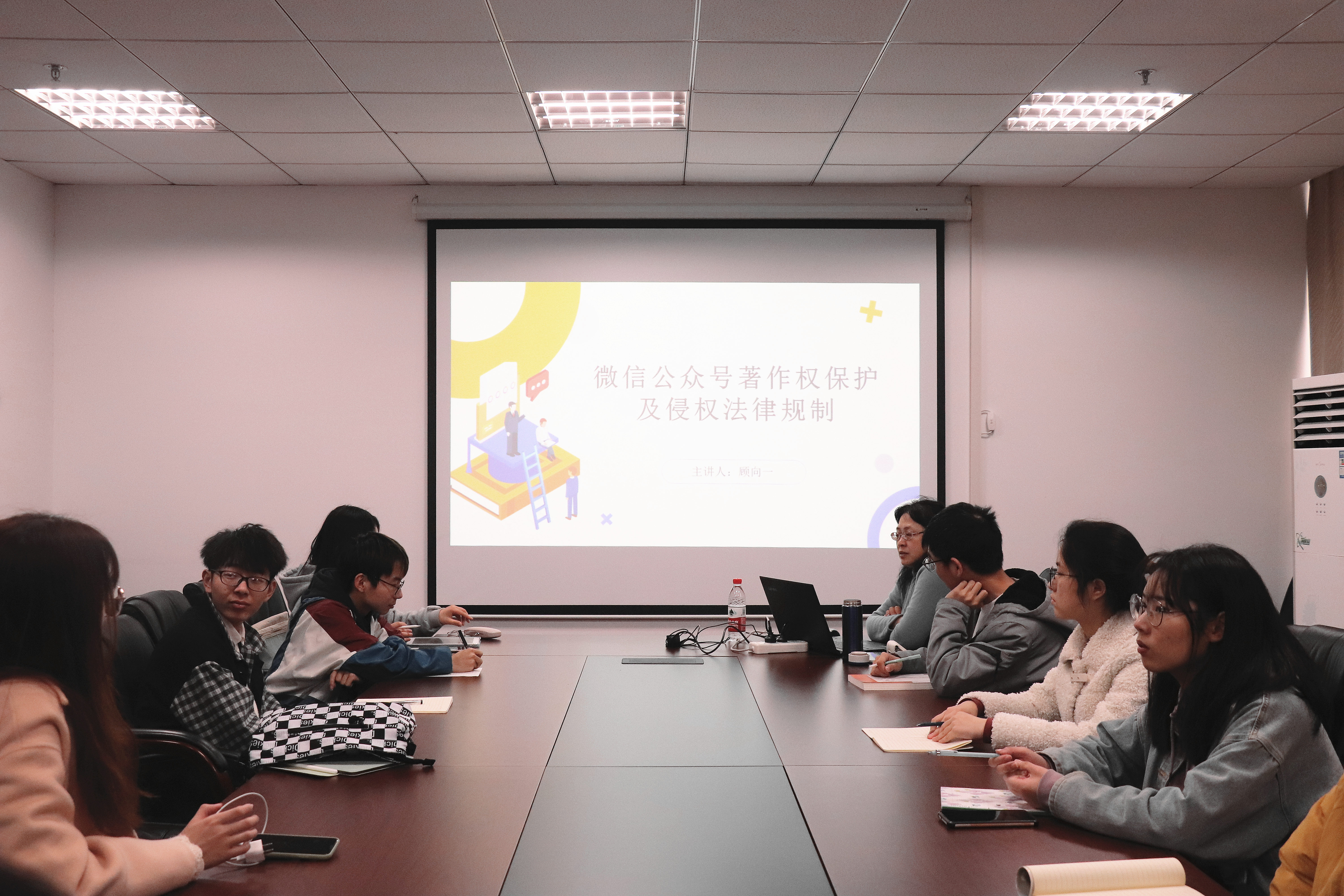 顾向一老师认为,随着时代的发展,高校中各学院使用微信公众号的现象早已屡见不鲜,它不仅担任着宣传与思政教育角色,同时也引导着高校学生的内心世界。但在使用这一新式工具的过程中,有关著作权的纠纷也层出不穷。为更好树立宣传中心成员的知识产权保护意识,顾向一老师为宣传中心的成员开展了一次生动的法律课堂。