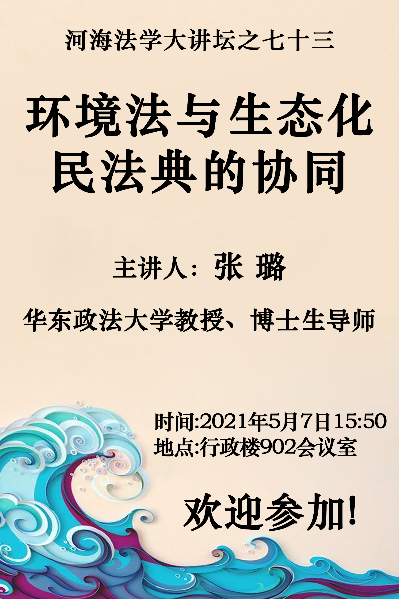 讲座预告:河海法学大讲坛之七十三:环境法与生态化民法典的协同