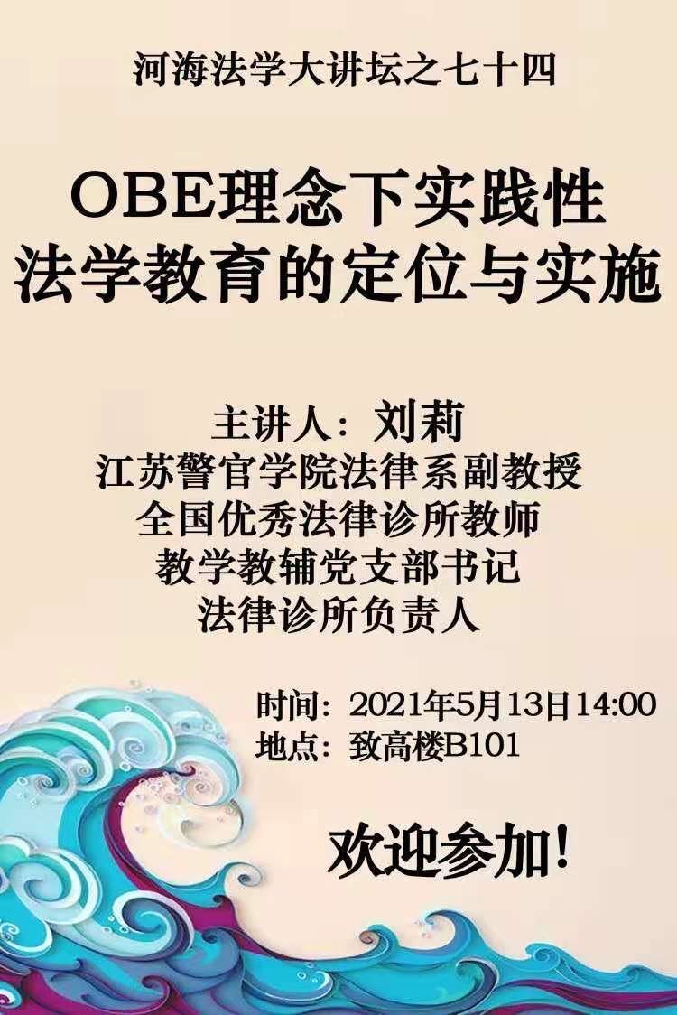 讲座预告:河海法学大讲坛之七十四:OBE理念下实践性法学教育的定位与实施