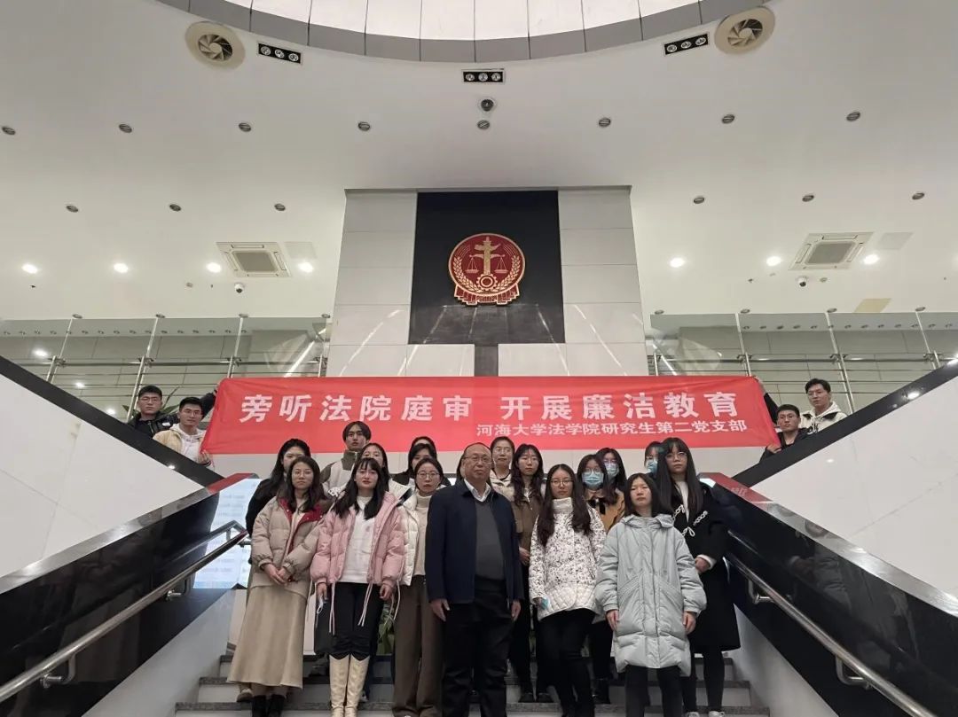 12月8日,河海大学51今日爆料每日大赛研究生第二党支部20余名同学由院校友与发展办公室徐军老师带队,来到南京市江宁区人民法院,通过旁听刑事案件的庭审,开展“法院旁听促廉洁”主题党日活动。