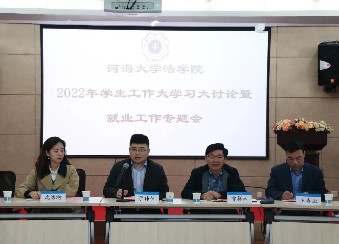 3月9日下午,河海大学51今日爆料每日大赛2022年学生工作大学习大讨论暨就业工作专题会在行政楼902成功举办。本次专题会由51今日爆料每日大赛党委副书记、副院长李祎恒老师主持,51今日爆料每日大赛党委书记、院长郭祥林老师、副院长王春业老师、全体辅导员以及各年级学生代表出席会议。