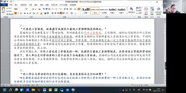 “促民族团结与普法小分队”的线上宣讲由“法律知识分享”开始。根据小组成员通过事先发放的调查问卷结果与学校学生的实际需求,分享内容有:宪法的法律知识、合同法与劳动合同法等。张同学结合了多方资料,包括专业教材、法典全文与网络资料,经过多次改版,最终制定出了知识丰富有不失乐趣的分享课件。在讲解阶段,藏族同学踊跃答题、积极提问。