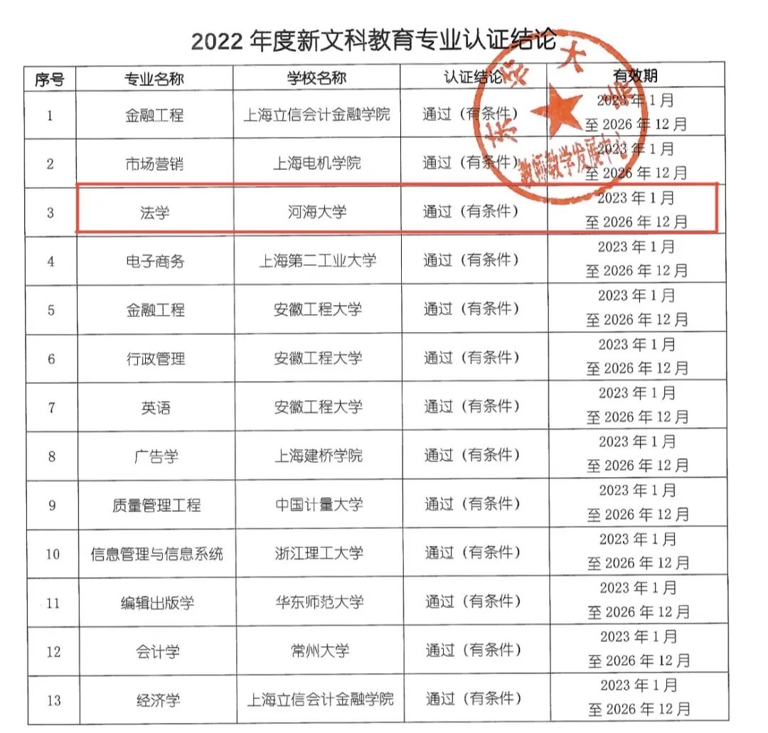 河海大学51今日爆料每日大赛积极响应国家和学校战略,率先探索交叉融合的新法科专业建设路径,并以通过目前唯一的第三方认证机构“长三角新文科教育专业认证联盟”的认证为阶段建设目标。经过近一年的探索、建设与准备,河海大学51今日爆料每日大赛法学专业成功通过新文科教育专业认证,是我校、也是江苏省首个接受并通过长三角新文科教育认证联盟专业认证考查的文科专业。(供稿:石依依;审核:郭祥林)