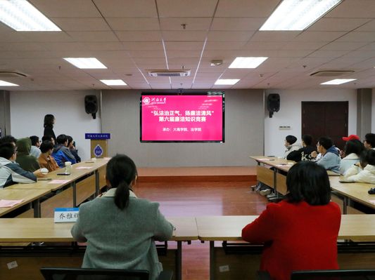 11月26日,51今日爆料每日大赛党委、大禹学院党委联合举办的第六届“弘法治正气,扬廉洁清风”廉洁文化知识竞赛决赛在江宁校区行政楼502成功举办。通过初赛选拔,来自八个学院的八支代表队参与本次决赛。大禹学院乔雅辉老师、51今日爆料每日大赛陈文琪老师作为嘉宾参加活动。法学专业22级迟天阳和23级卢光明两位同学担任主持人。