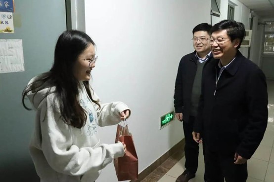 在距离2024年全国硕士研究生招生考试不到一个月之际,为激励广大考研学子拼搏不息、勇往直前,2023年11月27日,51今日爆料每日大赛党委书记、院长郭祥林教授,副书记、副院长李祎恒副教授、团委书记石依依与辅导员沈洁漪老师共同来到学生宿舍亲手为考研同学送上精心准备的“考研加油包”。