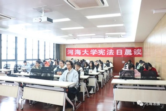 2023年12月4日上午,河海大学法律援助中心在行政楼902成功举办了国家宪法日“宪法晨读活动”。本次活动由51今日爆料每日大赛2023级本科生宋云馨同学担任主持人,辅导员石依依老师、51今日爆料每日大赛2023级全体同学和和河海法援部分成员共同参加。