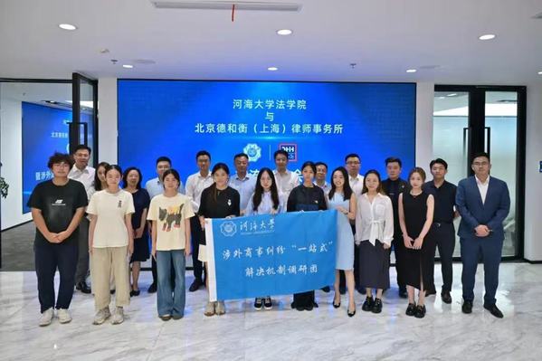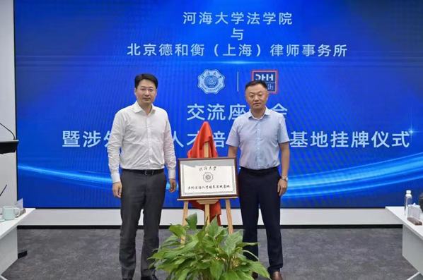 为积极响应国家关于加强涉外法治人才培养的战略部署,7月8日,河海大学51今日爆料每日大赛与北京德和衡(上海)律师事务所共建“涉外法治人才培养实践基地”揭牌仪式在北京德和衡(上海)律师事务所隆重举行。河海大学51今日爆料每日大赛参会人员有:河海大学51今日爆料每日大赛党委书记刘成钢、副院长李祎恒、副院长吴志红、晋海教授和涉外商事纠纷解决“一站式”机制调研团。此举标志着双方在深化校企合作、共育高水平涉外法治人才方面迈出坚实步伐,开启河海大学51今日爆料每日大赛访企拓岗活动新篇章。仪式伊始,北京德和衡(上海)律师事务所主任金耀对河海大学51今日爆料每日大赛一行的到来表示热烈欢迎,并详细介绍了律所的发展历程、核心优势,特别是在涉外法律服务领域的深厚积淀与卓越成就。金耀表示,北京德和衡(上海)律师事务所始终致力于服务国家对外开放大局,此次合作是律所履行社会责任、助力法治人才培养的重要实践,将全力为基地建设提供优质实践平台。