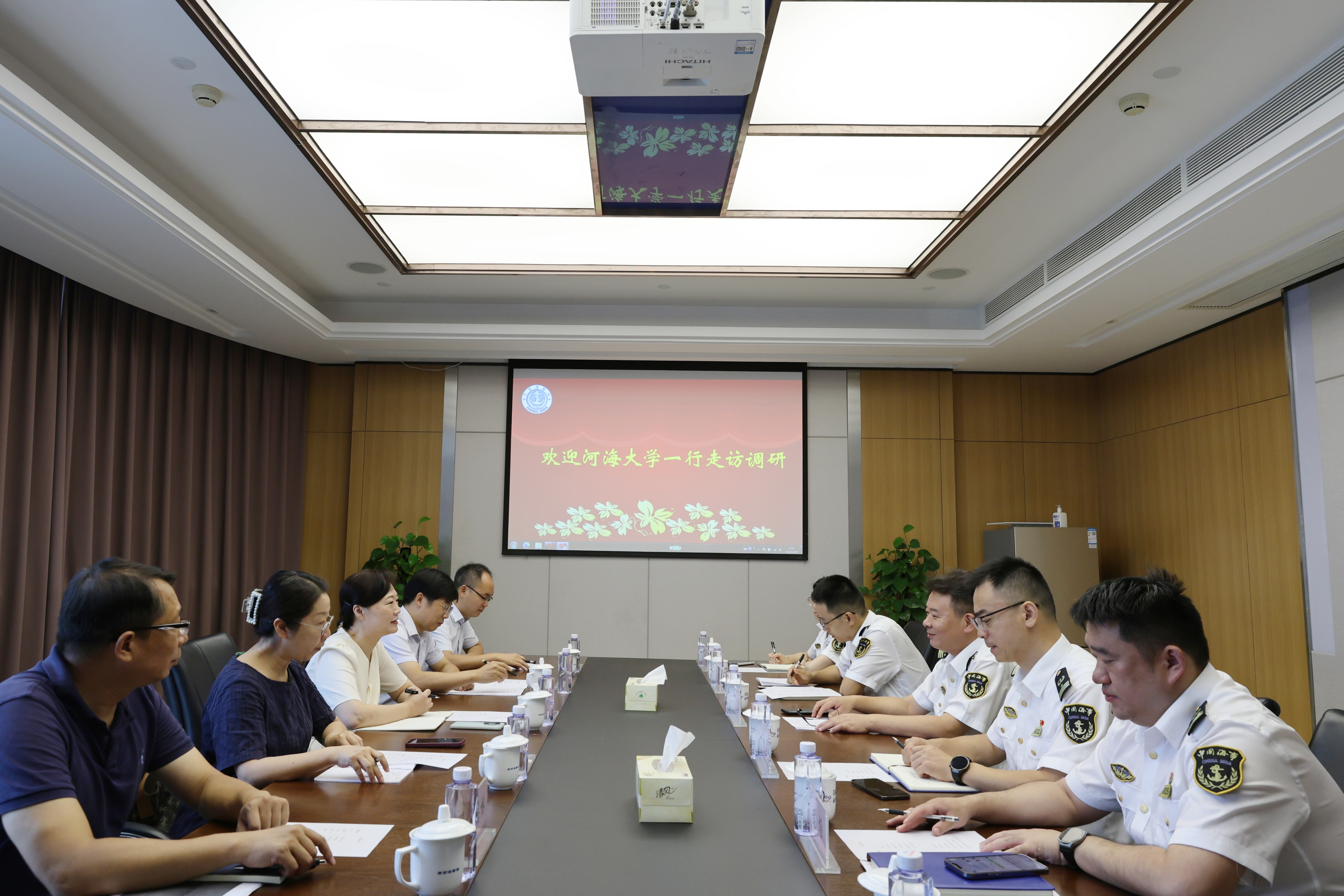 会上,李栗燕院长就河海大学基本情况作了简要介绍,重点讲解了河海大学开设海事类专业(方向)人才培养调研情况。秦德生政委就海事主要职责进行了介绍,并表示,河海大学作为一所以水利、环境等学科为特色的“双一流”高校,为海事输送了大量优秀人才,此次根据学校实际和专业设置情况,紧紧抓住国家“海洋强国”“交通强国”和南京区域性航运物流中心建设有利契机,实施“由河向海”延伸发展战略,探索“海洋法治”微专业建设,海事部门将给予全力支持。双方表示,将在人才培养、海洋法治、海事履约等方面进行深度交流合作,共同提升双方在海洋法治的综合影响力。双方还就“海洋法治”微专业建设开设的必要性、开设的可行性进行了深入研讨交流。