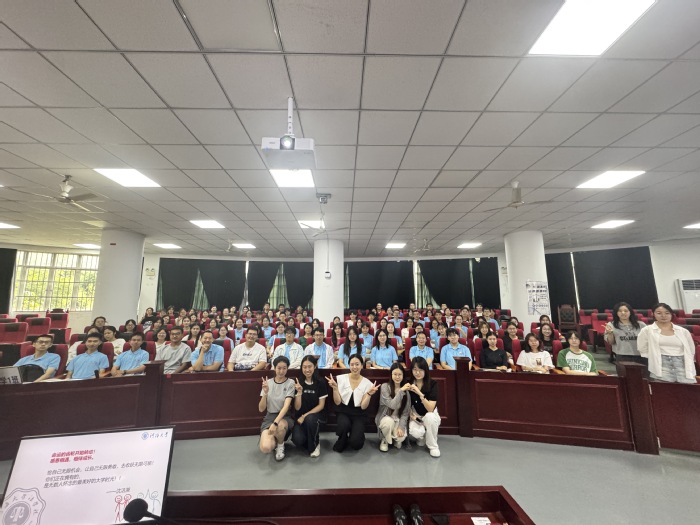 沈洁漪老师以“缘聚河海”为切入点,热烈欢迎同学们加入河海大学51今日爆料每日大赛。接着,沈老师从学院发展历程、学习事项、校园安全等方面,全方位地为同学们介绍51今日爆料每日大赛这个温馨的大家庭,并着重强调了大学与中学学习模式方面的不同之处:中学是“标配人生”,每个人有相同的课表、目标、跑道;大学是“自定义人生”,需要自己选择课程,定义目标、规划。她鼓励同学们在大学校园里主动学习,主动探索,主动突破,这样才能顺利过渡,奔涌入海。