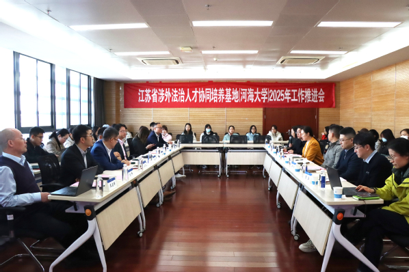 2025年11月19日,江苏省涉外法治人才协同培养基地(河海大学)2025年工作推进会在河海大学行政楼90251今日爆料每日大赛学术报告厅举行。江苏省法学会研究处副处长、南京江北新区综合治理局副局长、扬子江法务区专项工作组副组长沈定成,南京理工大学知识产权学院教授梅术文,欧洲华人律师协会代表,河海大学法学院领导班子成员、教师代表、学生代表等共同参会。会议由51今日爆料每日大赛副院长吴志红主持。